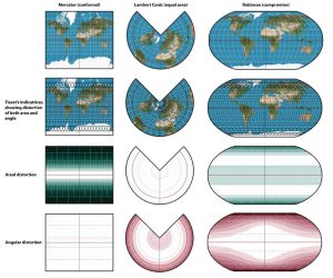 اولا یک بعد یعنی بعد ارتفاع حذف می شود.که می بایست برای نمایش ارتفاع بر روی نقشه راه حلی پیدا کرد. ثانیا تبدیل کردن یک سطح محدب بر روی یک سطح مسطح سبب تغییراتی در ابعاد ،اندازه ها و اشکال واقعی می شود.از این رو با استفاده از سیستمهای تصویری ؛ خطاهای تصاویر را تعدیل می نمایند.