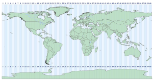 هرZone به صورت جداگانه تصویر می شود و با شماره آن مشخص میگردد. شماره گذاري قاچ ها از 1 براي نصف النهار 180 درجه غربی تا 174 درجه غربی شروع وبه 60 براي نصف النهار 174 درجه شرقی تا 180 درجه شرقی ختم مگردد.