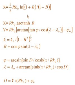 براي تبدیل مختصات جغرافیایی دبه دکارتی از معادلات مستقیم و براي تبدیل مختصات دکارتی به جغرافیایی از معادلات معکوس سیستم تصویر استفاده می شود.