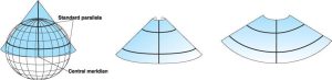 سيستم تصويرهاي، نقشه هاي زمين شناسي و يا كشوري در ايران كه توسط انگليسي ها تهيه شـده اسـت همگي در سيستم تصوير لامبرت مخروطي متشابه دو محوره هستند. ويژگي اين سيستم تصوير آنست كه مـيتواند منطقه وسيعي بين دو مدار جغرافيائي و طرفين اين دو مدار را پوشش دهد اما بيش از آن دچار اعوجاج مي شود.