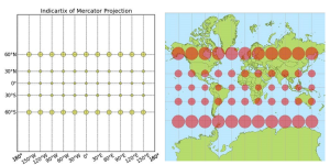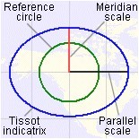 مثلا براي سیستم تصویر متشابه مرکاتور شاخص هاي تیسوت در شکل زیر نشان داده شده است که همه آنها دایره هستند.