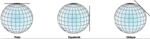 در مورد سیستم تصویر سمتی یا آزیموتی چنانچه صفحه در نقطه اي در استوا با کره مماس گردد به آن حالت استوایی گفته می شود و چنانچه با قطب مماس باشد به آن حالت قطبی وچنانچه در نقطه دیگر مماس باشد به آن حالت مایل گفته می شود .