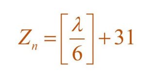 طول جغرافیایی تقسیم بر عدد 6 سپس حذف قسمت اعشاری بعلاوه عدد 31
